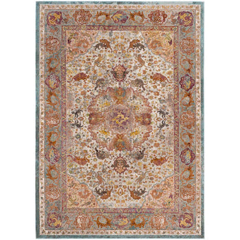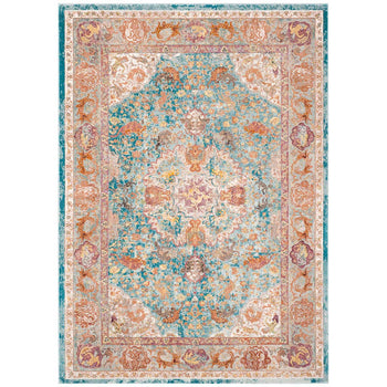 The intricate pattern seen in this rug lends it a classic charm with a contemporary twist. Its design features a harmonious mingling of floral motifs and ornamental elements gracefully power-loomed to create a stunning visual effect.