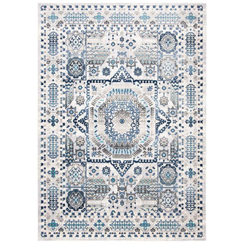 Constructed from a durable mix of polypropylene and polyester, this rug promises to withstand the daily rigors of high-foot-traffic areas while maintaining its luxurious appearance. The traditional style exudes a sophisticated charm that seamlessly complements both modern and classical interiors, anchoring your room with its majestic central medallion and border-enhanced layout.