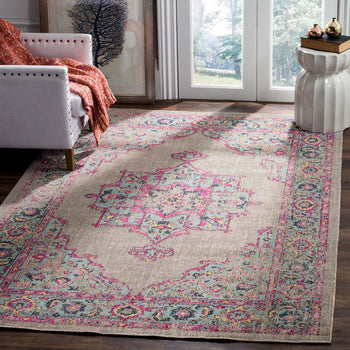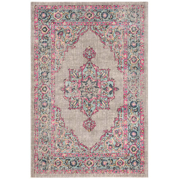 Our exquisite rug features an intricate pattern that exudes an antique charm with modern flair. The design showcases a central medallion surrounded by ornate motifs, bordered by detailed patterns?all set against a soothing light grey backdrop with delightful light blue highlights. This combination offers a subtle touch of color that is versatile enough to complement various d?cor styles, from contemporary to classic.