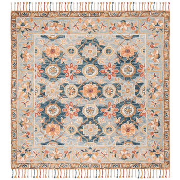 Add a touch of elegance to any room with our exquisite 3' X 3' Round area rug. Handcrafted in India, this stunning piece showcases a sophisticated grey and navy color palette. Its expertly tufted wool construction promises both comfort and durability. At a modest height of 1/4", it seamlessly blends with any decor without overwhelming your space. The timeless round shape offers a unique alternative to traditional rectangular rugs. The intricate pattern features ornate floral and geometric shapes, providing a classic yet bold statement piece for your home. This rug's style is versatile, complementing both contemporary and traditional interiors. Elevate your home with this beautiful, easy-to-maintain centerpiece.