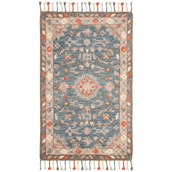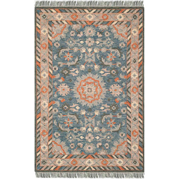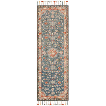 Elevate your space with this exquisite 2'-3" X 5' Accent rug, boasting a captivating blend of blue and rust hues. The traditional pattern, featuring intricate floral and geometric motifs, exudes timeless elegance and is sure to be a conversation starter. Each rug is meticulously hand-tufted in India by skilled artisans, ensuring a unique piece that's as durable as it is beautiful. The plush 1/4" pile height, crafted from the finest wool, offers comfort underfoot. Perfect for adding a touch of sophistication to any room, this rug harmoniously combines classic style with modern craftsmanship.