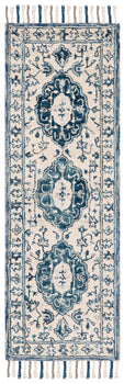 Craft a compelling ambience with this exquisite 3' x 3' Round area rug, an artisanal masterpiece from India. The hand-tufted artistry seeps through its durable blend of 85% wool and 15% cotton, ensuring a soft, inviting touch with a plush 1/2" pile height. This rug encapsulates a Bohemian spirit, layered in an ivory and blue palette, promising a serene and versatile aesthetic that will harmonize with any space. The rug showcases an ornate traditional pattern, radiating an ageless charm bound to elevate your home decor. Bring in a piece of bohemian allure and enduring craftsmanship to your home with this round-shaped marvel.