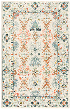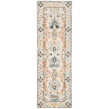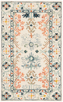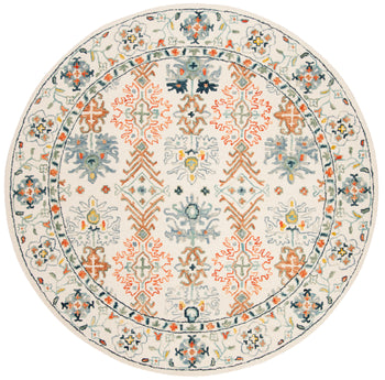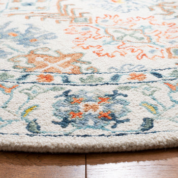 Discover timeless elegance with our handcrafted 3' x 3' round area rug, featuring a soft ivory base adorned with intricate patterns in serene shades of blue. This meticulously tufted piece offers a harmonious blend of 80% wool and 20% cotton, providing both comfort and durability. With a pile height of 1/4", it presents the perfect balance of plushness without compromising on ease of maintenance. Made in India, this rug exudes an authentic artisanal charm, seamlessly integrating sophistication and cultural richness into your space. Ideal for accenting any room, this rug promises a gentle touch and a graceful visual appeal that will elevate your home decor.