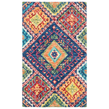Enhance your living space with the artisanal charm of our Hand-Tufted Wool Area Rug. Expertly crafted in India, this 3' X 3' Round rug boasts a 1/4" pile height that adds comfort and warmth underfoot. The rug presents a vibrant palette of BLUE / MULTI hues, intricately designed to create an eye-catching pattern that will become the focal point of any room.