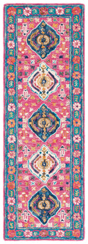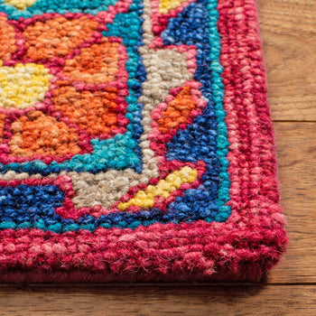 Boasting a vibrant palette with predominant red and blue hues, this runner exhibits an alluring Bohemian style that enfolds your floors in a cascade of colors and encapsulating charm. The intricate patterns on the rug borrowed from the image display a mesmerizing mix of ornamental medallions and floral motifs, exuding an aura of timeless beauty and eclectic sophistication.