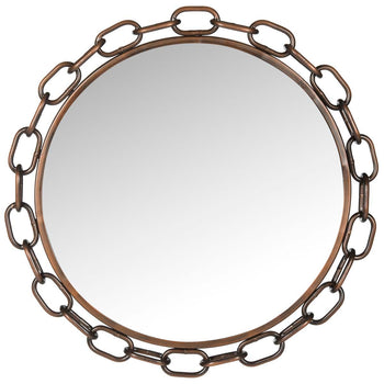 Nautical with a fashionable twist, the Atlantis chain link mirror is a bold and handsome anchor to transitional and traditional rooms. Crafted with an iron and wood frame in an antique copper finish, this mirror is a masterwork of metal artistry.