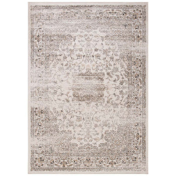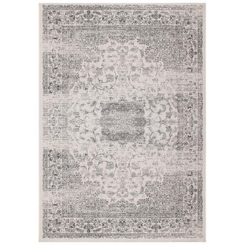 Featuring an intricate pattern that brings both depth and subtlety to your floors, the rug?s elegant design is characterized by a harmonious balance of ivory and grey tones, encapsulated in a delicate balance of florals and ornamental motifs that speak to the rug's transitional style, seamlessly bridging the gap between traditional and contemporary aesthetics.