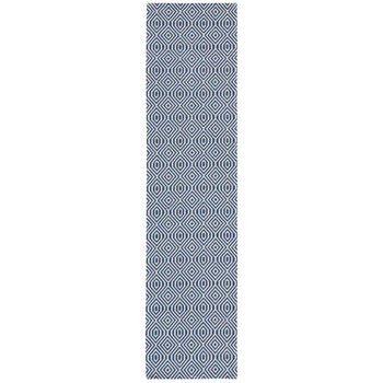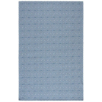 Elevate your space with our sophisticated Small Rectangle area rug in striking NAVY and LIGHT GREY. Expertly power-loomed in Turkey, this rug measures 2'-10" x 5'-0" with a comfortable pile height of 3/8". Perfectly blending style and sustainability, it's crafted from 93% recycled cotton and 7% polyester?proving eco-friendly can be chic. The captivating geometric diamond pattern imbues any room with a contemporary aesthetic. Not only is it a stylish choice, but it's also OEKO-TEX certified, ensuring your rug is free from harmful substances. A blend of tradition and modernity, this rug is a durable and stylish addition to any interior.