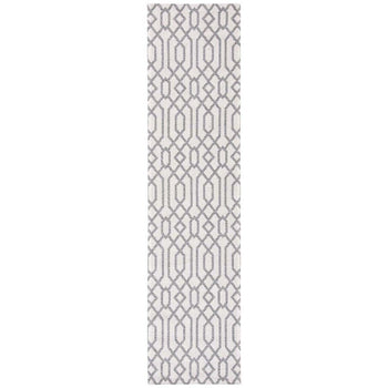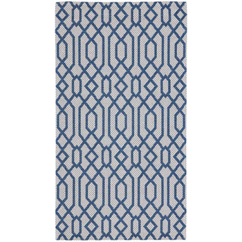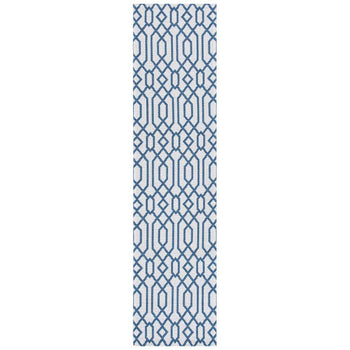 Elevate your space with this sophisticated 2' X 8' NAVY / LIGHT GREY runner rug, featuring a striking geometric pattern that adds a modern touch to any corridor. Crafted using a Power Loomed technique, this rug boasts a comfortable 3/8" height, providing a plush feel underfoot. Made in Turkey from an eco-friendly blend of 93% Recycled Cotton and 7% Polyester, it's not only stylish but also sustainably conscious. Plus, its OEKO-TEX certification ensures it's free from harmful substances, making it a safe choice for your home. Add instant elegance and durability to your decor with this beautifully designed runner.