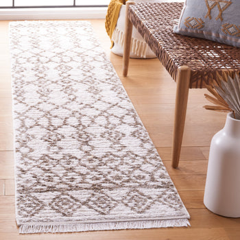 Elevate your home with this stunning 2' x 9' runner rug, meticulously crafted in Turkey with power-loomed precision. Featuring a sophisticated ivory and grey color palette, this elegant runner boasts a plush 5/8" pile height for underfoot comfort. The pattern, inspired by the image, showcases a harmonious blend of traditional and contemporary motifs, making it a versatile addition to any hallway or living space. Constructed with 8% polyester and 92% recycled cotton, this rug is not only stylish but also environmentally conscious. Experience peace of mind with its OEKO-TEX certification, ensuring the rug is free from harmful substances. Add a touch of refinement to your decor with this durable and timeless piece.