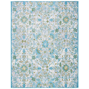 Our rug boasts a delightful ivory and light blue color palette, effortlessly infusing a serene and subtle elegance into your decor. The intricate floral pattern exudes a classic yet refreshing vibe that harmonizes with any setting, be it contemporary or traditional. The design intricacies, featuring a fusion of botanical motifs, lend themselves to a versatile aesthetic that complements a wide range of furniture and accessories.