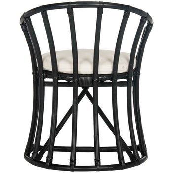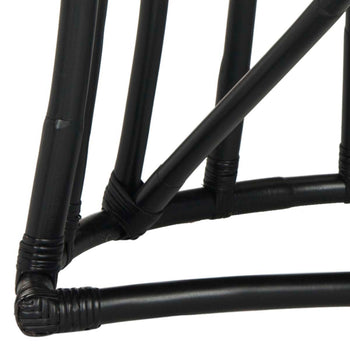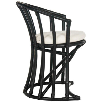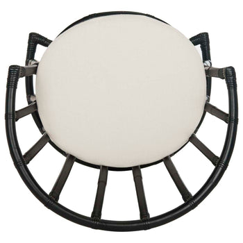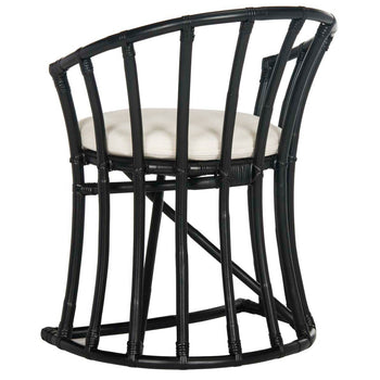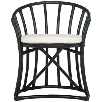 Finished in black, this modern rattan accent chair was inspired by Bali's most celebrated five star hotel. This updated version of the iconic seating option features sleek curves, clean lines, and 100% cotton upholstery to refresh any space.
