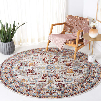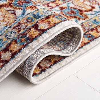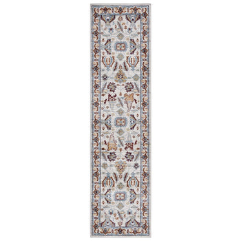 Crafted from high-quality Polyester for durability and ease of care, this rug is washable, ensuring that its intricate and ornate patterning remains fresh and vibrant for years to come. The sophisticated palette of soothing beige and serene blue is beautifully complemented by accents of warm and inviting terracotta hues, creating a harmonious and inviting atmosphere in any room.