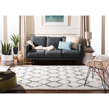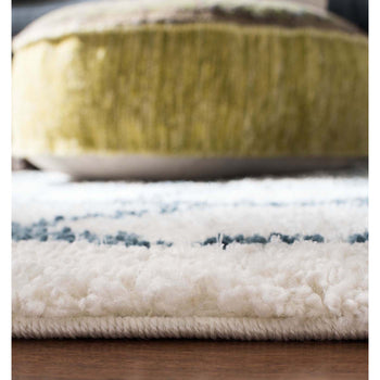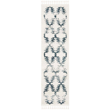 Add a touch of timeless elegance to your home with our luxurious Cream / Blue Runner Rug. Measuring a versatile 2'-2" X 6' and boasting a plush height of 1 3/8", this exquisite piece is perfect for bringing warmth and style to any narrow space. The intricate design features a classic diamond pattern with rustic charm, a nod to the Shag & Flokati styles of yesteryear, yet with a modern twist that suits contemporary d?cor.