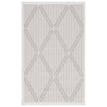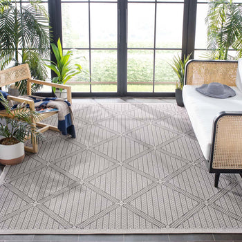 Designed to captivate, our rug features a sophisticated cream and grey palette, harmoniously blending with any decor. Its geometric pattern lends a modern, yet classic, aesthetic that is versatile for both indoor and outdoor settings. The low pile height of 1/4" ensures ease of maintenance while providing a comfortable surface underfoot.