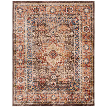 Introducing our exquisite 3' X 5' Traditional Area Rug, a piece that echoes the timeless charm of classic rug artistry, power-loomed to perfection in Turkey. This small rectangle rug is steeped in rich brown and rust shades, seamlessly blending with any room's interior to create an ambiance of warmth and sophistication.