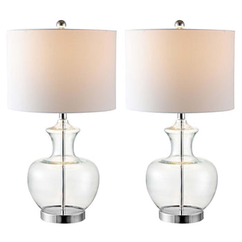 Energize any interior with this contemporary table lamp. Perfect for framing a sofa or bed, its minimalist spin on a classic amphora shape is highlighted by its glass body chrome finish. Sold in sets of two.