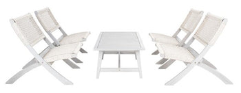 Perfect for morning coffees or evening cosmos, this Blaze 5 Piece Coffee Set refreshes British Colonial style for today's outdoor entertaining. Blaze's four chairs flaunt organic curves and woven details that beautifully juxtapose the clean angles of its coffee table.