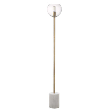 Inspired by minimalist Scandinavian style, this contemporary floor lamp brings instant character to the living room. The industrial style of its single bulb lends a dramatic glow, while its gold finish adds warmth. Designers love its posh white base.