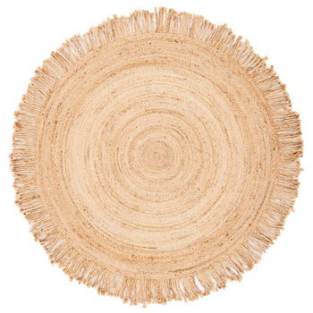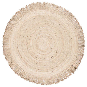 Experience the organic allure and luxuriant feel of our Handmade 4' x 4' Round Beige Jute Area Rug. Finely crafted and shaped in India, this masterpiece represents the immense craftsmanship endeavours and traditional artistry. The versatile 4' x 4' round dimensions allow it to effortlessly accent any space, harmonizing well with various interior styles. Its entrancing beige color channels earthy appeal, providing a serene and cozy atmosphere to your living space. Made with durable and environmentally-friendly jute materials, the rug offers a comforting height of 1/4" promising an underfoot sensation of pure pleasure. This exquisite piece not only enhances the aesthetics of your home but also is a true testament to the beauty of traditional Indian arts. Cherish the beauty of every thread showcasing the many hours of intricate work dedicated to creating this piece.