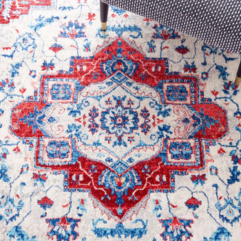 Drawing the eye with its rich NAVY and RED color palette, the rug features a symmetrical pattern radiating from the central medallion. Framed by a simple yet striking border, the intricate floral designs and classic motifs exude a sense of tradition with a modern twist.