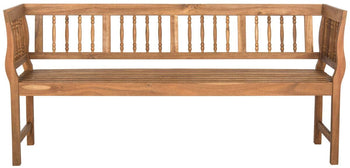 Bring inimitable Southern charm to your outdoor living area with this classic bench. Perfect for a garden or intimate gathering under the stars, it's crafted with natural acacia wood and finished with brass metal details for unmistakable elegance.