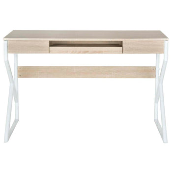 Whimsical and ultra contemporary, the Bryant computer desk has a quirky shape to its white powder coated iron legs. Contrasted with a natural grained top, this versatile desk has a pullout keyboard drawer designed for ergonomic comfort.