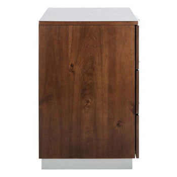 A stylish study in artistic contrasts, this Brylin 3 Drawer Nightstand is designed to showcase the best of rustic warmth and contemporary chic. Brylin's dark walnut finish beautifully juxtapose with its chrome-plated metal pulls and plinth, making for a versatile look that's always in vogue.