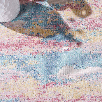 Elevate your living space with the fusion of modern design and comforting texture in our 4' X 6' Small Rectangle Indoor/Outdoor Area Rug. Artfully crafted in Turkey, this rug boasts a playful yet sophisticated blend of aqua and pink hues that are sure to add a pop of color and warmth to any room or outdoor setting.