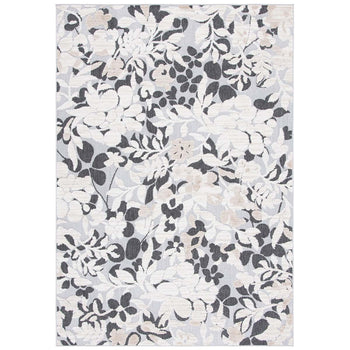 The rug features a charming country and floral style that is instantly warming and welcoming. The design weaves together ivory and charcoal hues to create a sophisticated pattern that complements a variety of home decor themes.