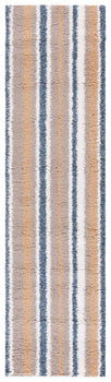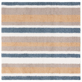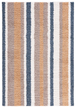 The exquisite rug features a charming striped pattern with alternating bands of taupe, ivory, and additional complementary shades that provide a modern, yet timeless aesthetic. The soft and plush pile, expertly fashioned from premium polyester, delivers a delightful underfoot experience and is highly resistant to stains and fading, ensuring long-lasting beauty and performance.