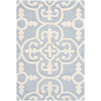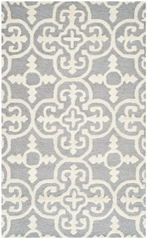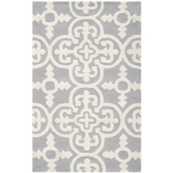 Elevate your living space with the timeless elegance of our Hand-Tufted Wool Area Rug, now available in a versatile 2' x 3' accent size. Inspired by classic design motifs, this rug blends the luxurious sheen of silver with the gentle warmth of ivory to create an inviting and sophisticated atmosphere. The intricate pattern showcased in the image brings an element of regal charm to your home, reminiscent of traditional filigree designs.