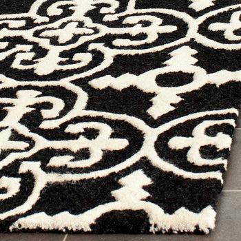 Each rug is masterfully crafted in India, utilizing a hand-tufted technique that ensures durability and a plush 3/8" pile height for underfoot comfort. The pure wool construction not only provides a soft texture but also offers natural strength and stain resistance, making this area rug both a practical and opulent addition to any room.