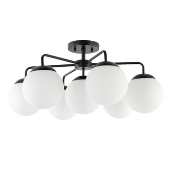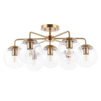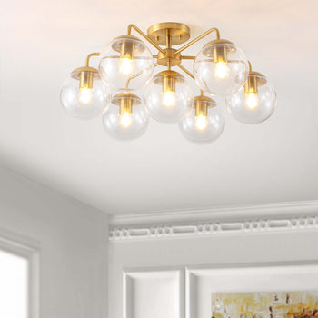 A new take on retro Sputnik-style lighting, this Camdyn Flush Mount is simply outstanding. Camdyn's climactic cluster of seven clear glass orbs reinvigorates any room, and its shimmering brass finish adds an aura of elegance.