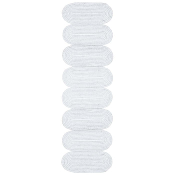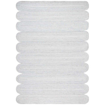 Crafted with meticulous attention to detail, this rug features a distinctive pattern consisting of rounded rectangular shapes, layered in a symmetrical design that invites both visual interest and tactile appeal. Each shape bordered in grey stands out on the soft ivory background, creating an engaging contrast that is both bold and soothing.