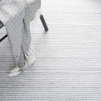 Introducing our exquisite Hand-Woven Polyester Area Rug, a perfect blend of contemporary elegance and functional artistry delivered in a compact 3' X 5' small rectangle size. Designed to enhance any modern home, this stunning piece showcases a stylish grey and ivory color palette that complements a variety of decor themes.