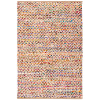 The vibrant reflections of RED contrast harmoniously with NATURAL tones, culminating in a unique rug that brings a piece of traditional craftsmanship into the modern home. Although the image showcases the intricate pattern detailed in its weave?a symphony of colors nestled within the durability of jute and the softness of cotton?our rug in red and natural hues promises to deliver the same rich texture and visual appeal.