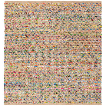Introducing our timeless hand-woven area rug, meticulously crafted in the warmth of India. This small rectangle rug, sizing up at a convenient 3' X 5', is the epitome of artisanal charm and robust construction. The distinct texture, derived from a rich mix of materials?60% Jute, 30% Chindi, and 10% Cotton?offers not just sustainability but also comfort underfoot.