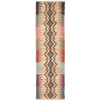 The construction of this piece is as noteworthy as its design. Meticulously hand-woven using a harmonious blend of jute and cotton, this runner rug offers durability, a comfortable underfoot, and a textured finish that's visually appealing and tactile. This natural fiber combination is not only eco-friendly but also brings an organic warmth to any space.