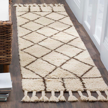 Crafted from 75% wool and 25% cotton, this runner rug offers both durability and comfort underfoot. The hand-tufted construction exemplifies skilled artisanship, creating a product that's not just a rug but a piece of art for your floor.
