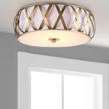 Consider it the height of fashion. The Charing Cross ceiling light reflects a stylish transitional look in any room or hallway.?Crafted of steel with an antique gold finish, its beautiful X motif encircles a white cotton drum shade.