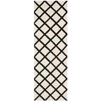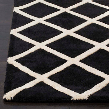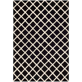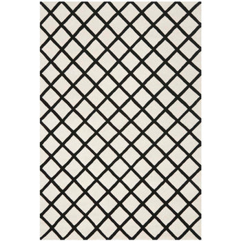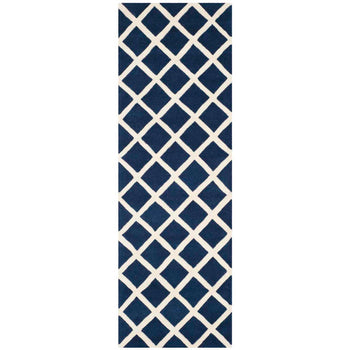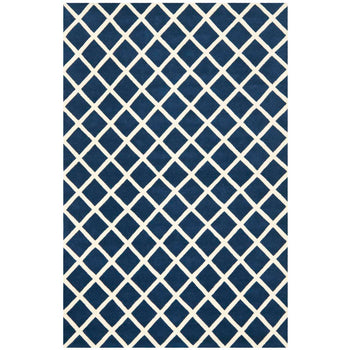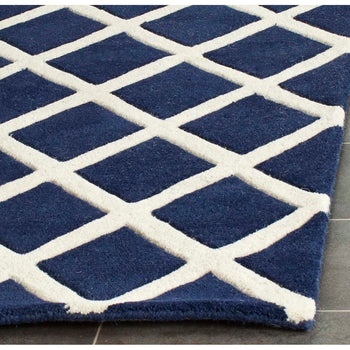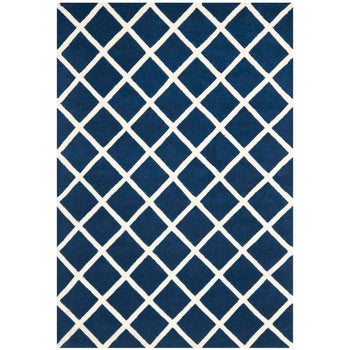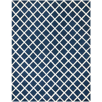 The regal charm of the rug is magnified by its striking diamond trellis pattern. The bold, dark blue diamonds are perfectly outlined by the crisp ivory lines, invoking a sense of rhythm and structure that effortlessly complements any decor, from contemporary to classic. This rug will blend seamlessly into your interior while making a statement of refined taste.