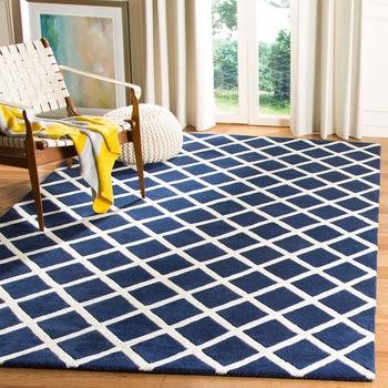Elevate the ambiance of your living space with the timeless elegance of our 2' X 3' Hand Tufted Wool Rug in a captivating DARK BLUE and IVORY color palette. This rug's classic accent shape and plush 1/2" pile height offer an inviting blend of comfort and style, echoing sophistication with a touch of luxury.