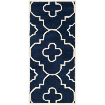 Proudly made in India, each rug tells the story of the skilled artisan who created it. Invite tradition and luxury into your home with this DARK BLUE and IVORY hand-tufted wool rug, and let it be the cornerstone of your interior design.
