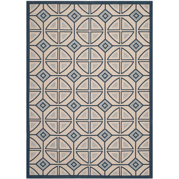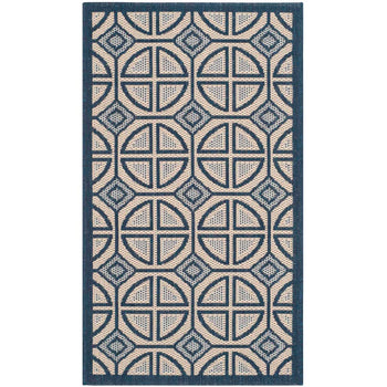 Introducing the epitome of balanced design and comfort ? our elegant Indoor/Outdoor Area Rug, sized perfectly at 2' X 3'-7" for an accentuating touch to any space. Delicately crafted in Turkey, this rug boasts a sophisticated geometric pattern that combines stately navy with a warm beige background, ensuring it complements a variety of decor styles.