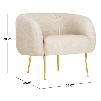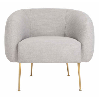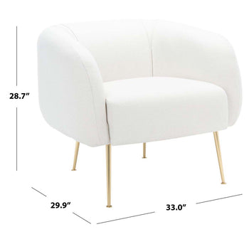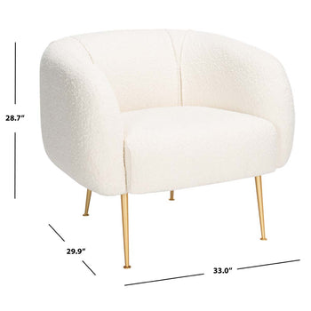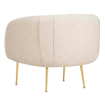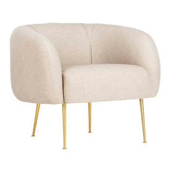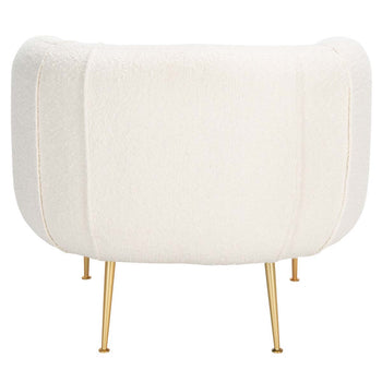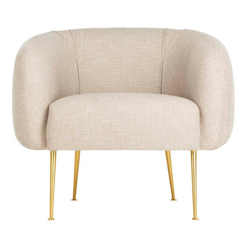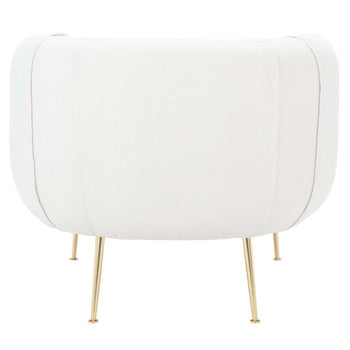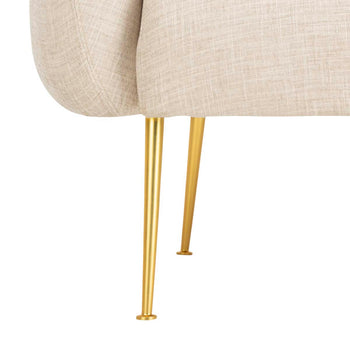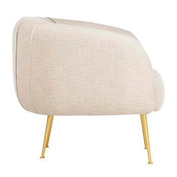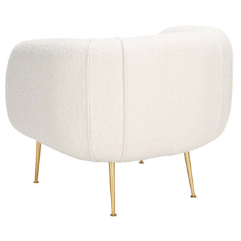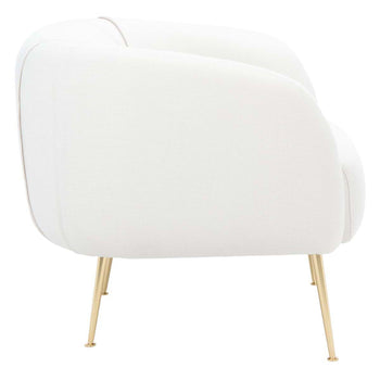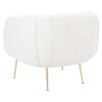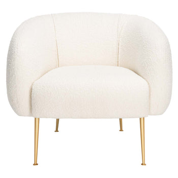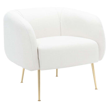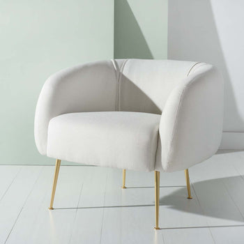 The designer furnishings collection that appoints the Saint Germain apartment of a French auction house owner inspired the Alena chair. Its plush off-white poly blend upholstery is paired with mid-century style gold legs to create a luxe contemporary classic.