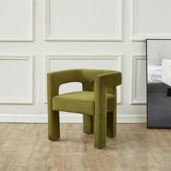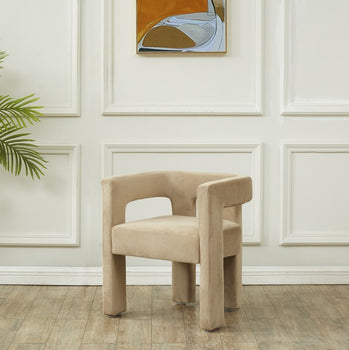 Give your decor a thrilling update with the Deandre Dining Chair. Overflowing with visual depth and modern artistic intrigue, Deandre's plush light velvet spotlights its eye-catching silhouette, making it a bold designer favorite.