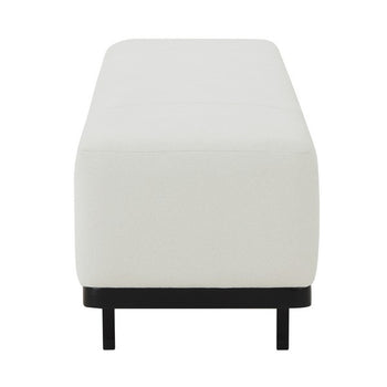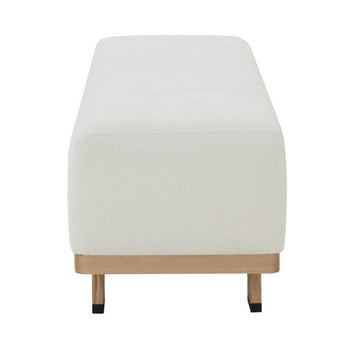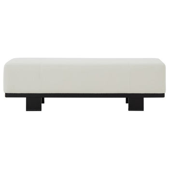 Step up any corner with the streamlined comfort and sophistication of our Abrianna bench. Combining plush upholstery with a minimalistic profile, our bench attains an effortless and welcoming presence. Its densely cushioned seat lends soft visual appeal and comfort. The seat is elevated upon an ash wood base for a perfect touch of warmth. Upholstered in a richly textured ivory-colored boucle, our bench complements your entryway, living space, or bedroom with plenty of comfort and elegance.