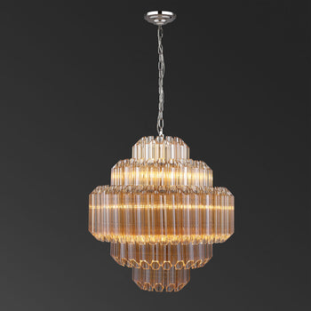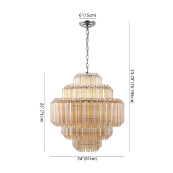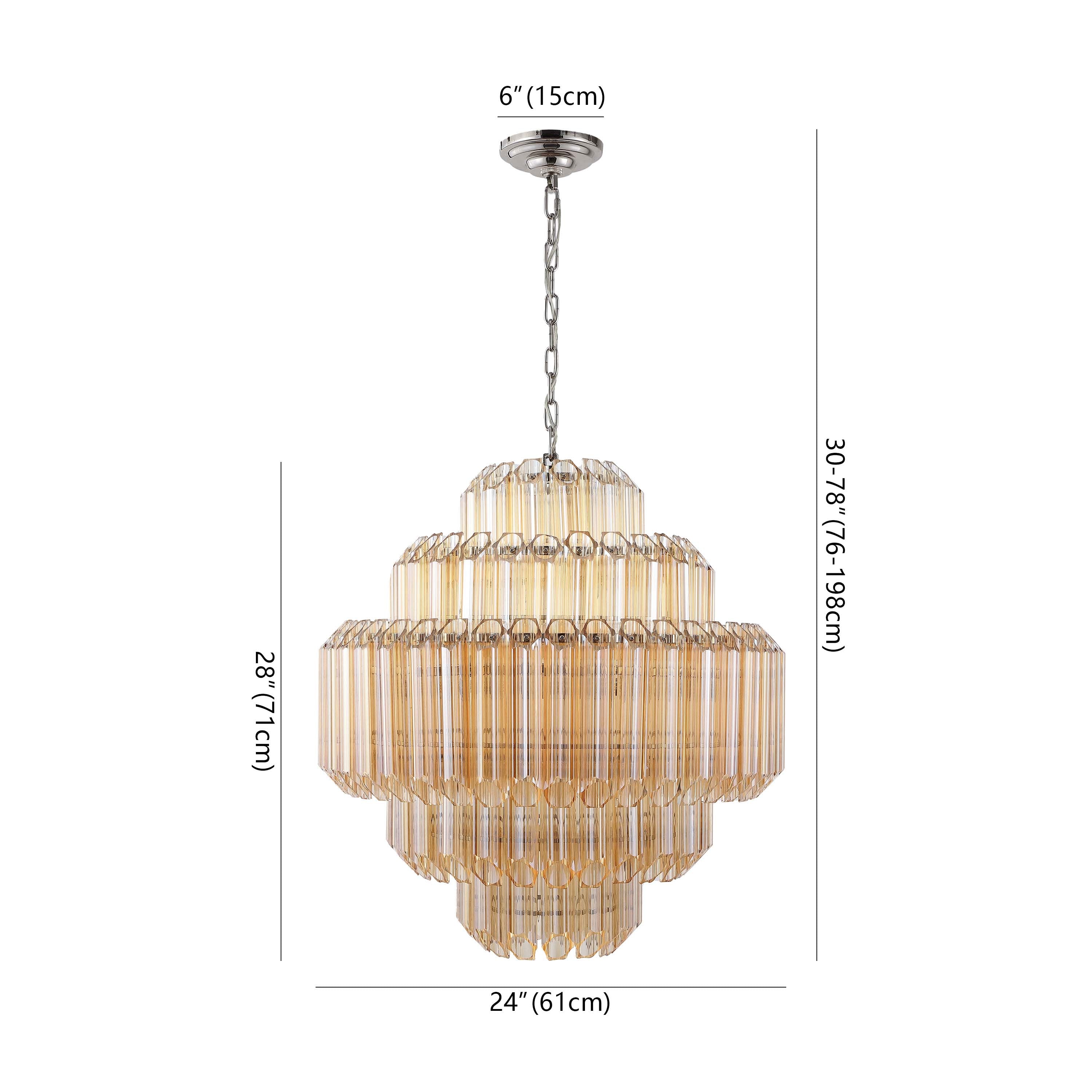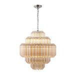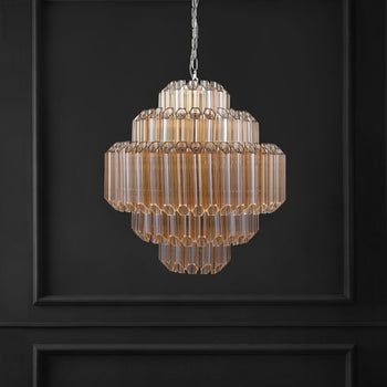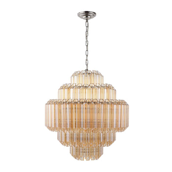 Make a bold and eye-catching statement with the radiant beauty of our Adaline chandelier. A perfect combo of classic elegance and contemporary playfulness, our chandelier is ready to take the center stage in your home. It combines clear glass with a sleek nickel finish to bring luxury to a wide variety of styles. Slender glass tubes are artfully layered to attain a dramatic and luminous chandelier. Its tiered design beautifully filters and reflects light to become a mesmerizing centerpiece for your entryway, living area, hallway, or dining room.