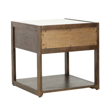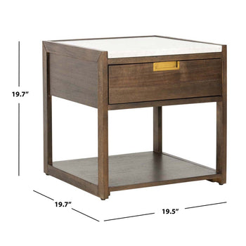 Transform any bedroom into a 5 star suite with this contemporary 1 drawer nightstand. Its high quality craftsmanship highlights the beauty of its authentic white marble top, antique brass metal handles and solid rubber wood with dark chocolate finish.